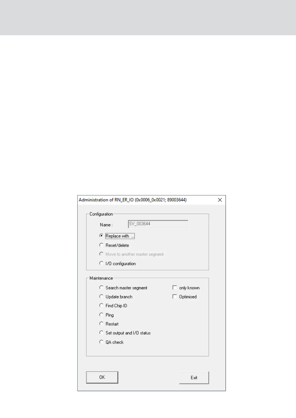 1. For reprogramming, use the IP address/chip ID of the replacement unit