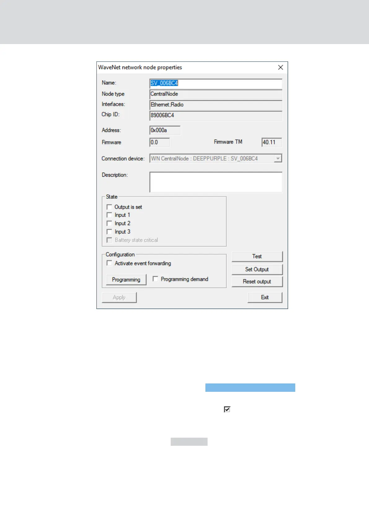 9 The window "WaveNet network node properties" opens.