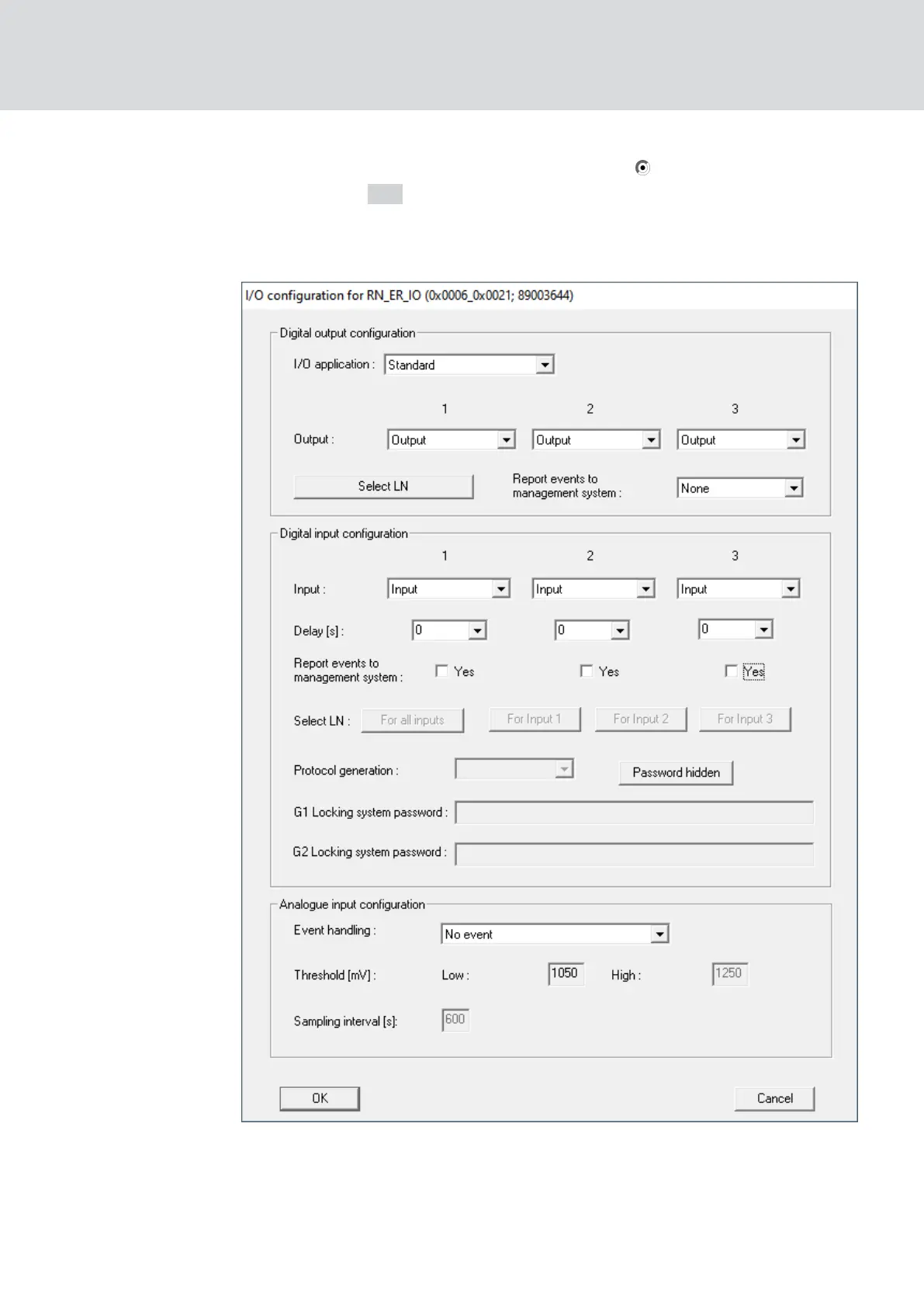9 The window "I/O configuration" opens.