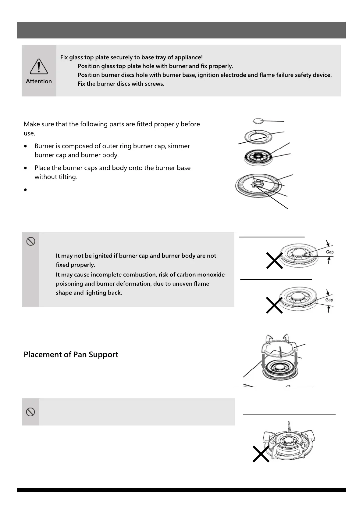 Do not use appliance with burner cap and burner body positioned