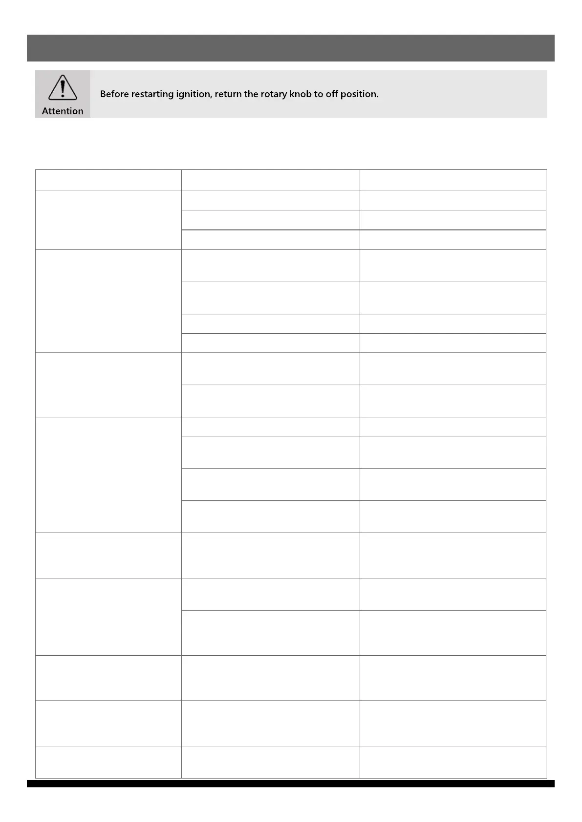 If abnormality or fault is observed, turn off flame. Ensure that the appliance cools down completely before un-