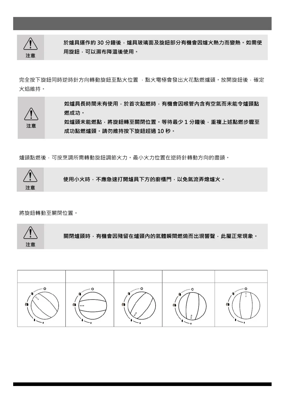 中火 點火 / 最大 中火 最小 關閉位置