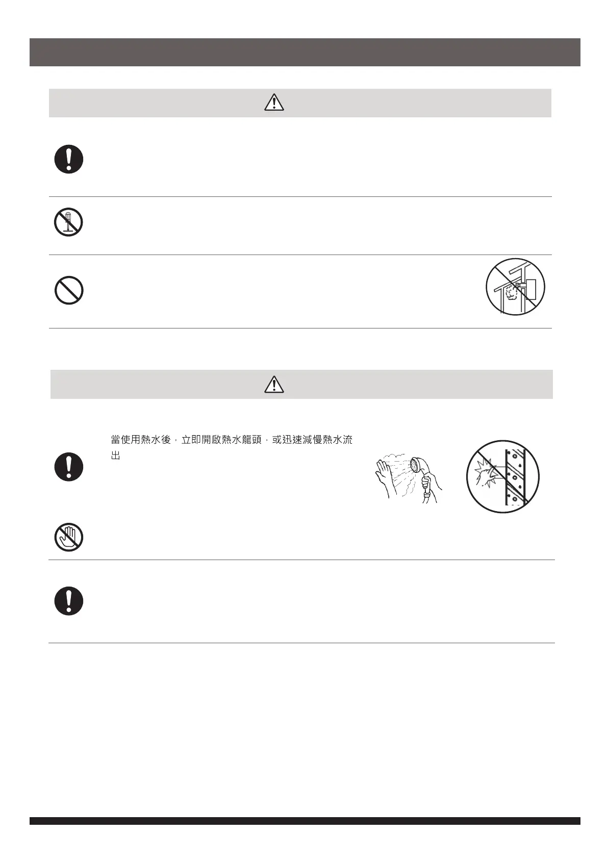 熱水爐使用期間或完畢後,切勿觸摸排氣管,避免燙
