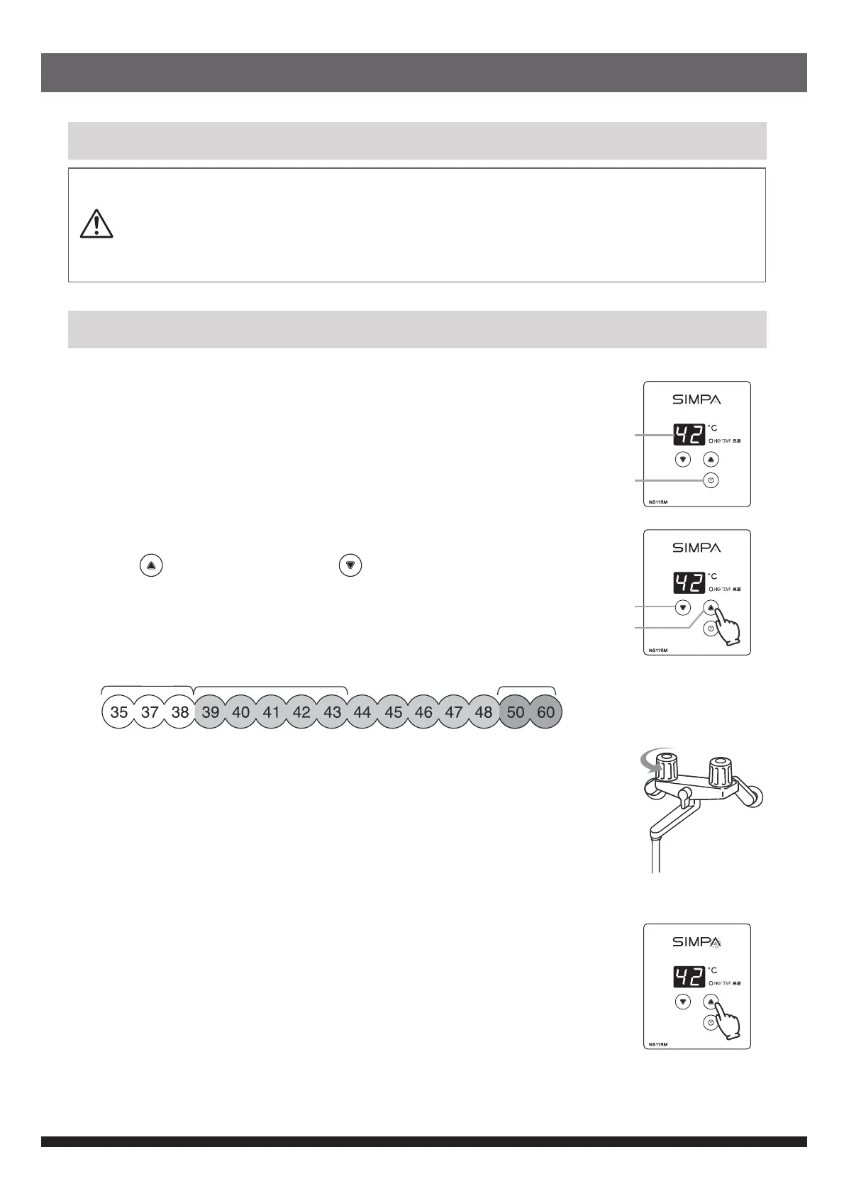 熱水爐運作時,熱水溫度不可設定至 48℃ 以上。如溫度設定在 48℃