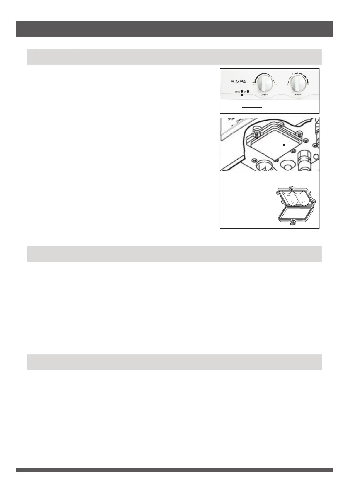 • 防止過高水壓裝置:當爐具內的水壓高於 2100kPa,位置於熱水出口的水洩壓閥會打開洩壓,並於水
