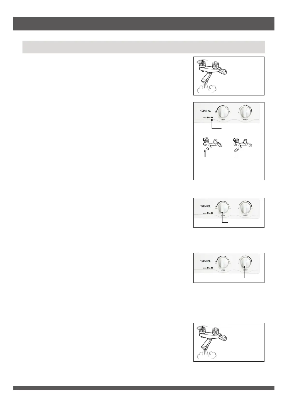 • 轉動水溫調節旋鈕及火力調節旋鈕可調較熱水水溫。