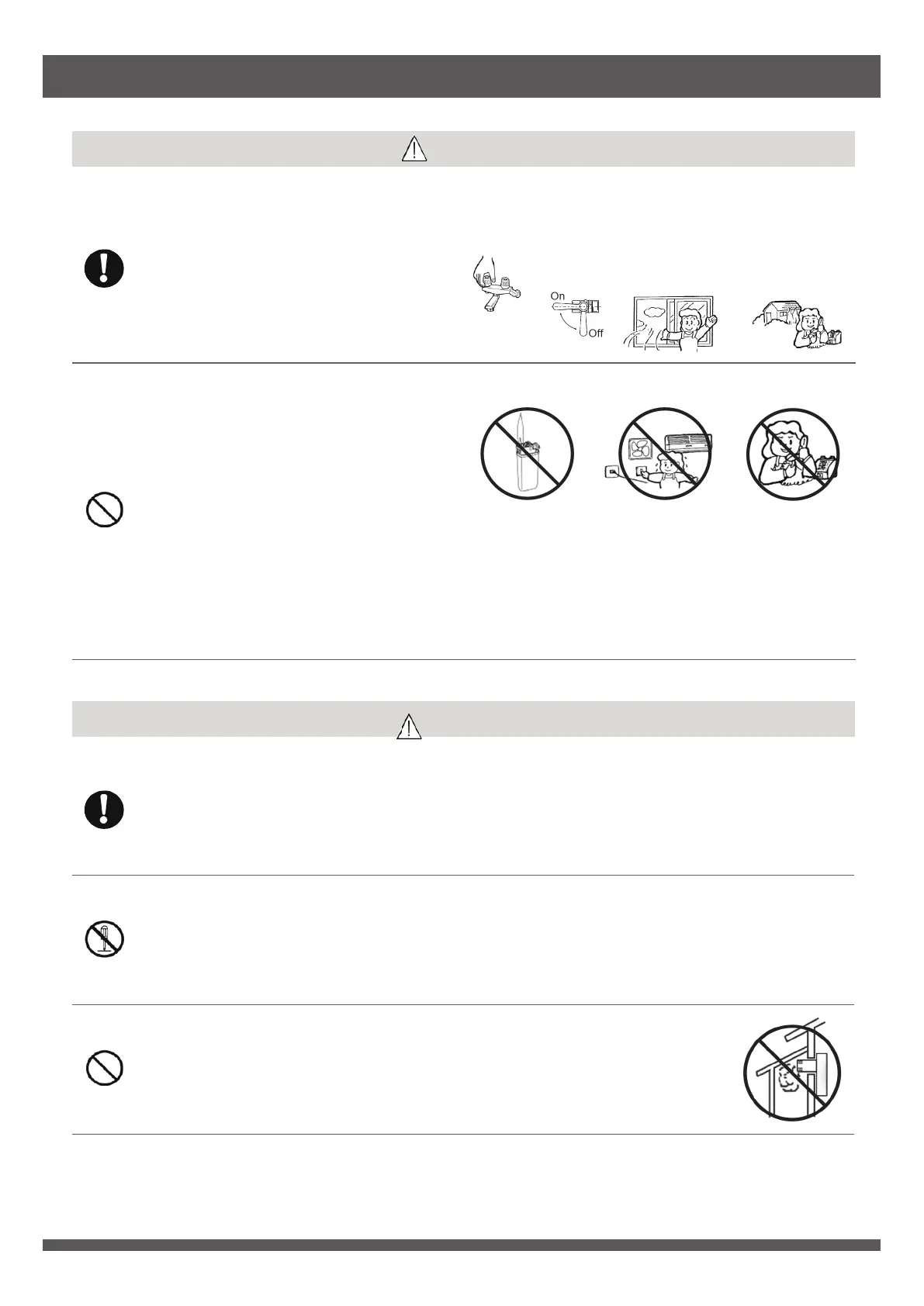 When there is a gas leak, do not perform any of the above actions until repair work has