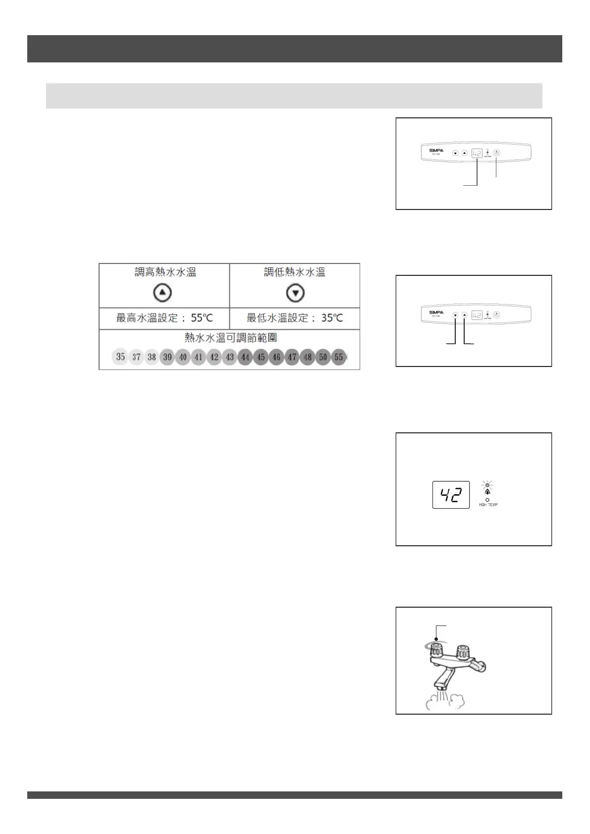 爐具運作時,熱水溫度只可設定為 48℃ 或以下。如熱水溫