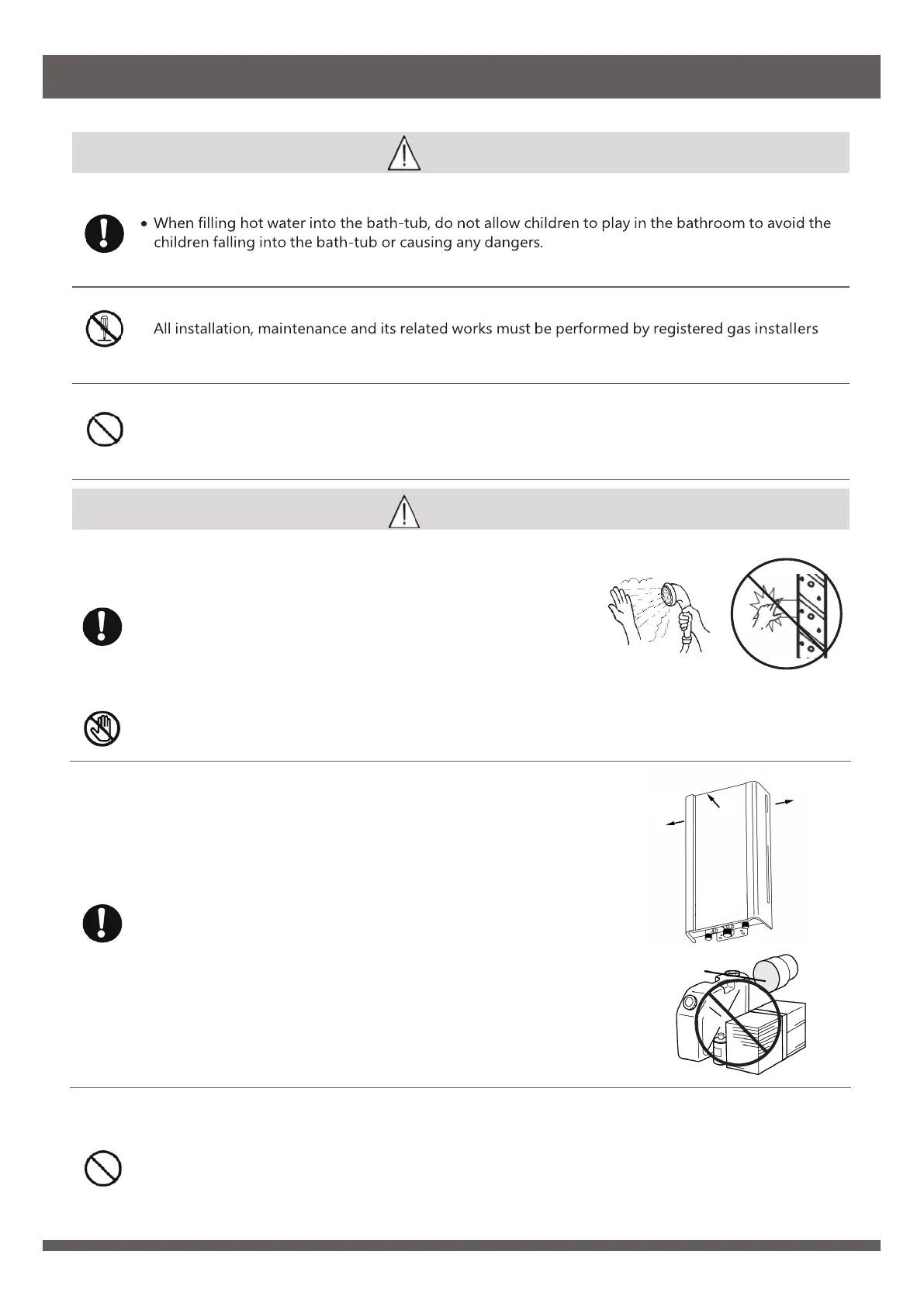 Do not touch flue terminal or flue duct to prevent from scalding.