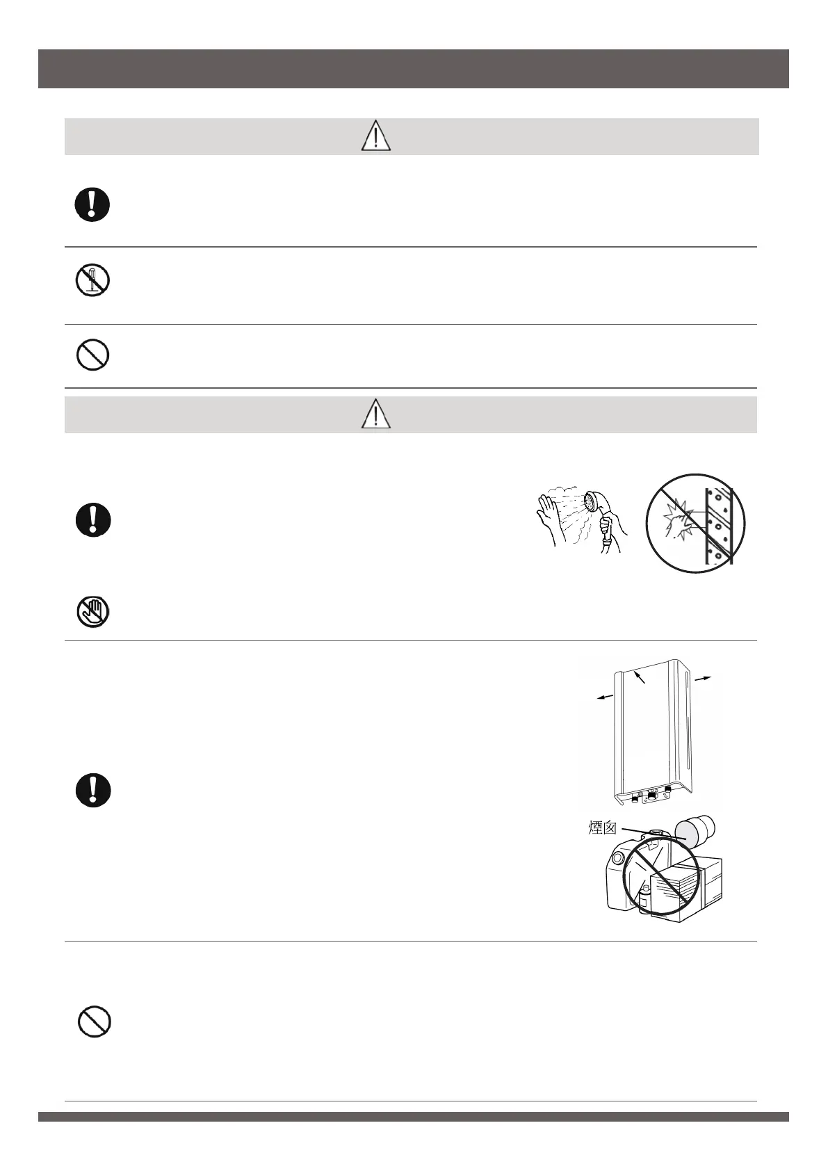 切勿於熱水爐或煙囪周圍擺放或使用易燃物品、揮發