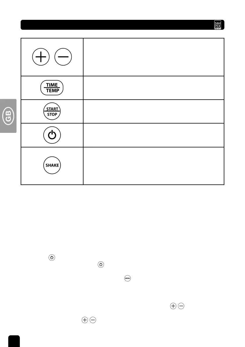 8. Touch the temperature/cooking time setting buttons to increase or