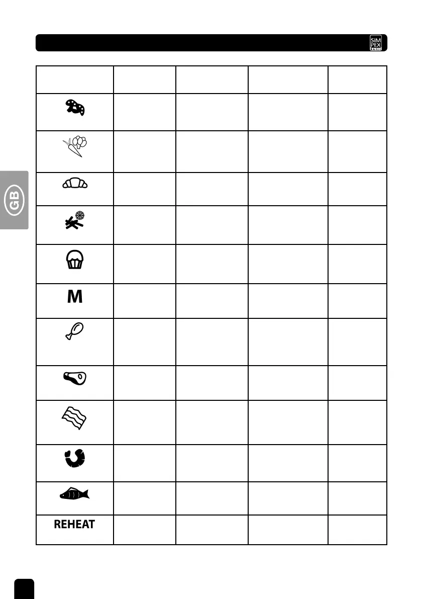 Tab. 2: Cooking instructions