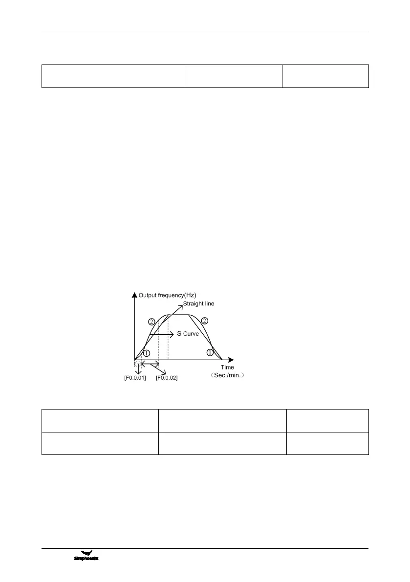 characteristics of S curve is determined by the parameter [F1.0.01] and [F1.0.02]. This function is mainly to