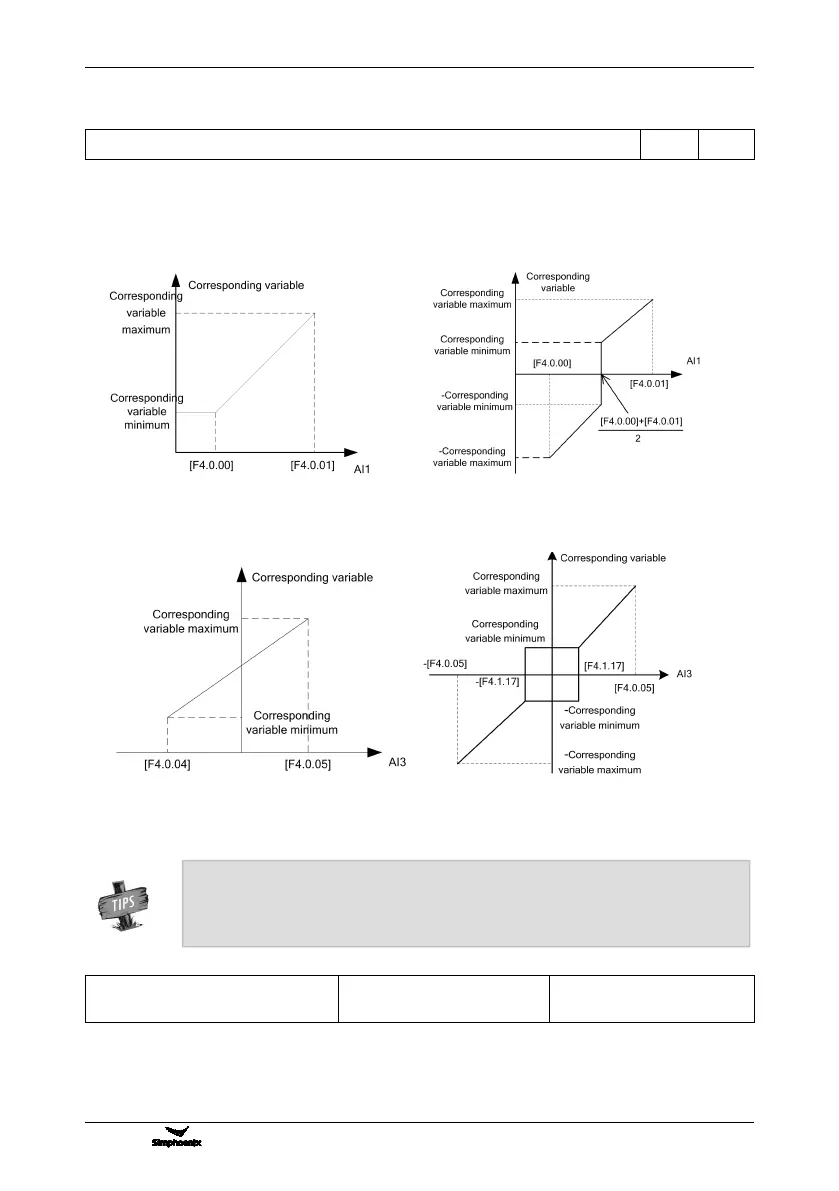 F4.0.00~F4.0.05 Minimum and maximum values of analog input AI1~AI3