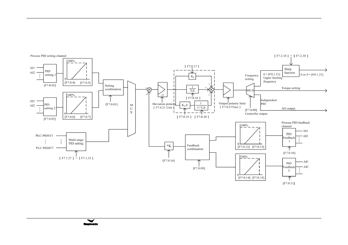 Refer to the following figure for the structure of Process PID and functions of each functional parameters: