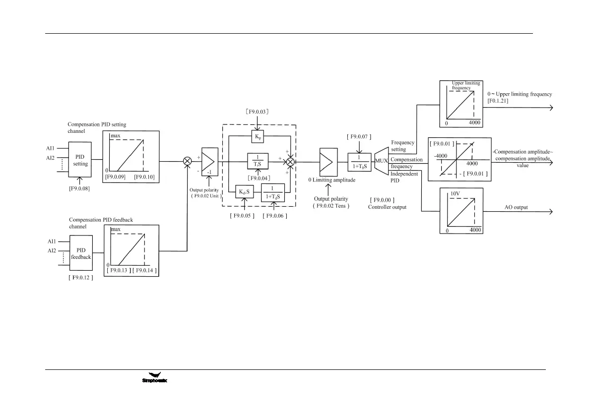 Refer to the following figure for the structure of compensation PID and functions of each functional parameter: