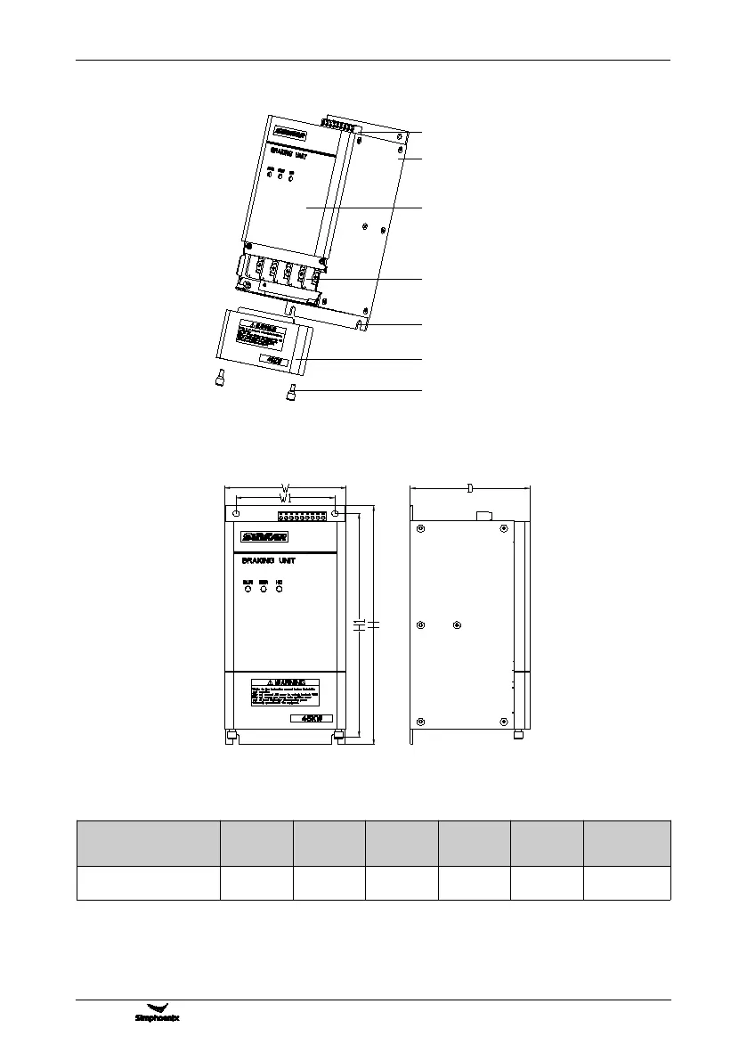 Simphoenix V800 Series - 13.1.3 APPEARANCE OF BRAKE UNIT; 13.1.4 INSTALLATION SIZE OF BRAKE UNIT