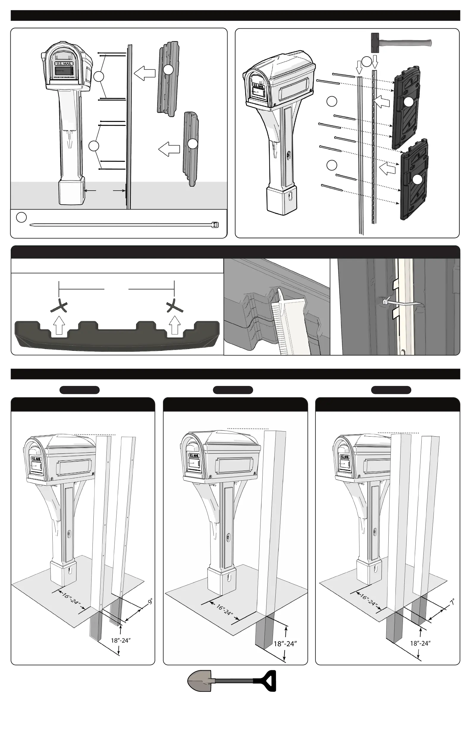 OPTION 1: MEDIUM DUTY APPLICATION - TWO STEEL T-POST FENCE POSTS TO MATCH HEIGHT OF MAILBOX (NOT INCLUDED)