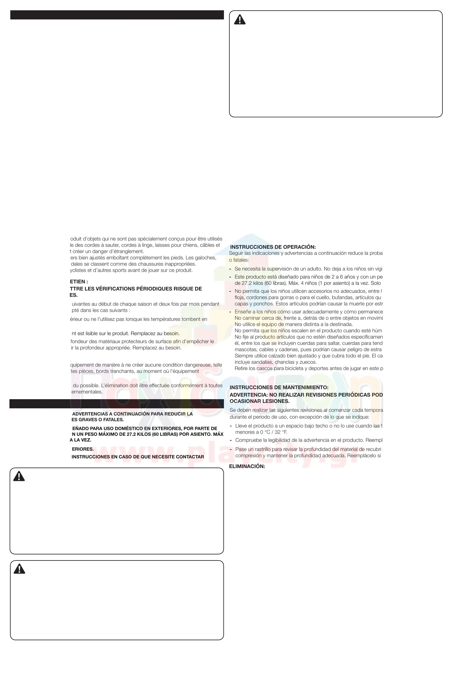 recubrimiento para áreas de juego en el hogar” adjunta. Se requiere una protección máxima