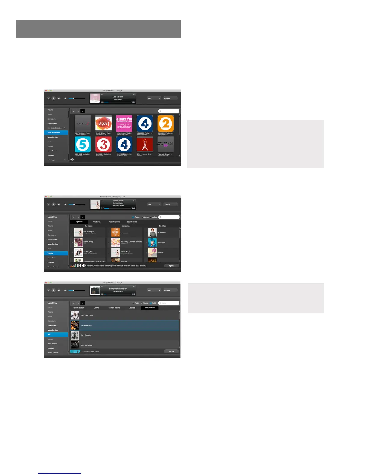 Audio are we7 and Deezer. Register with one or both services