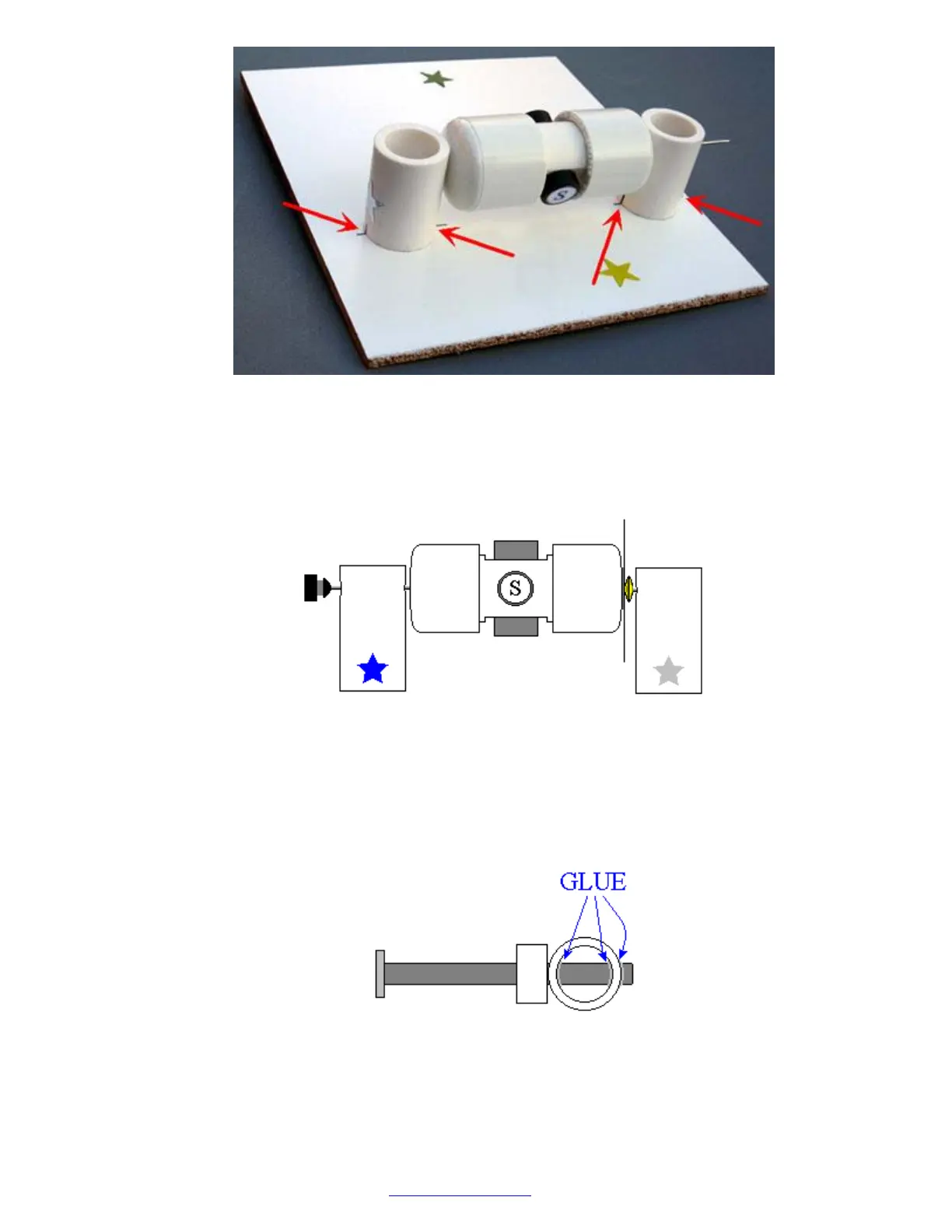10.Insert the rotor into the stand marked with the blue star. Glue it to the board the same way