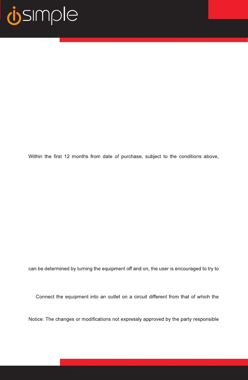 iSimple ® will repair or replace the product at our discretion, if it is defective in material