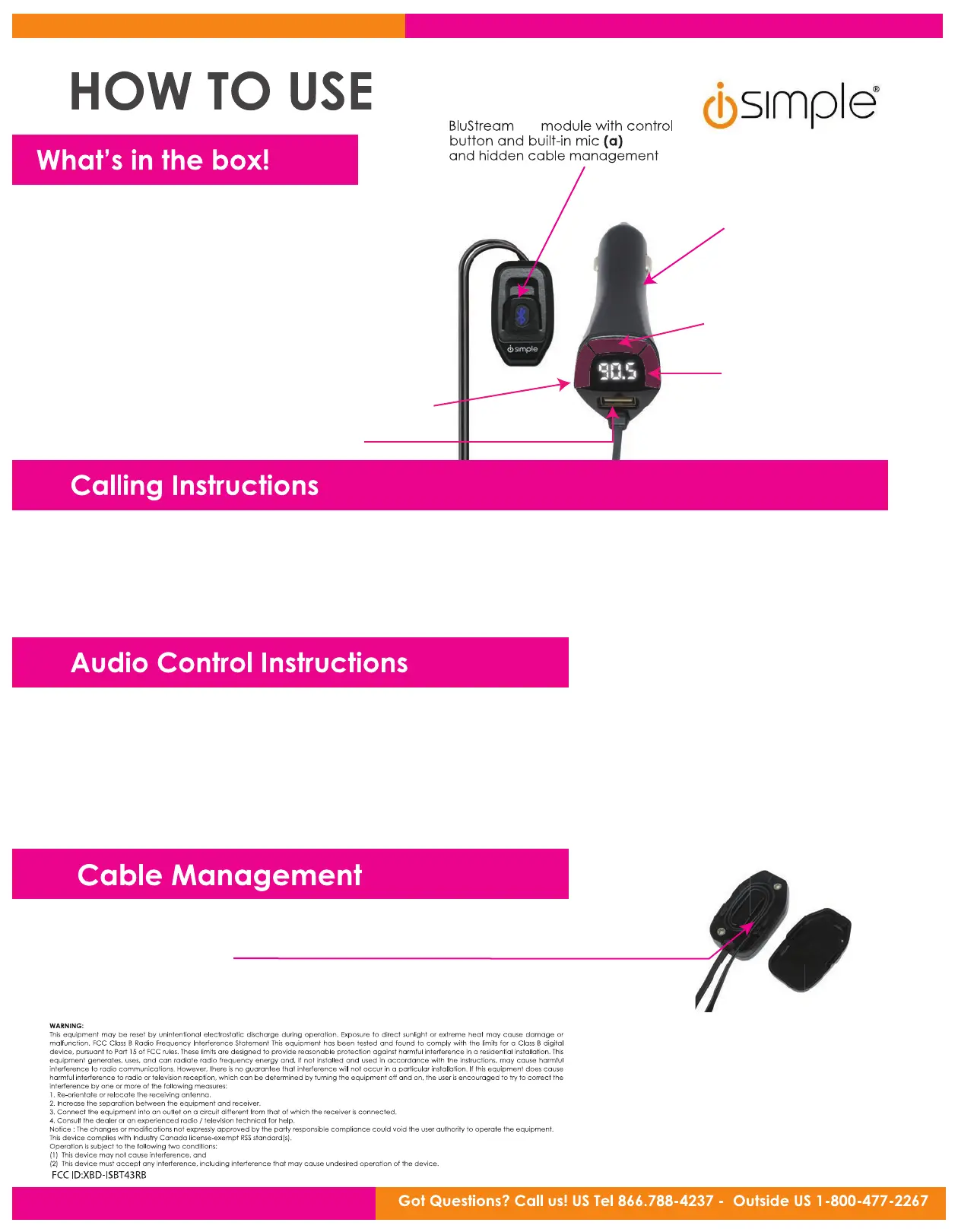 To redial last call: Press the BluStream FM center control button (a) twice (can only do this when not in music