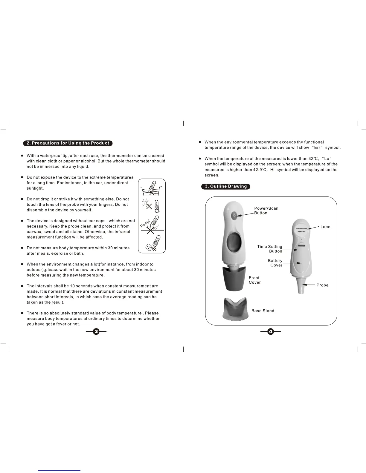 Simple FDIR-V1 - Precautions for Using the Product; Outline Drawing of the Thermometer