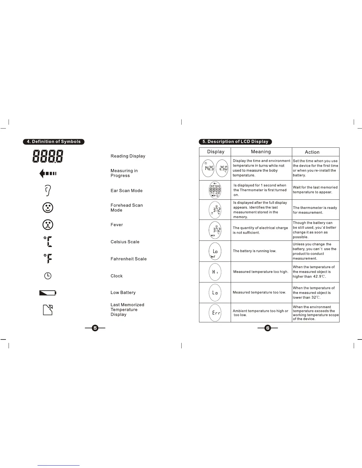Simple FDIR-V1 - Description of LCD Display; Measurement Status Indicators; Display Modes and Information; Battery Status Warning