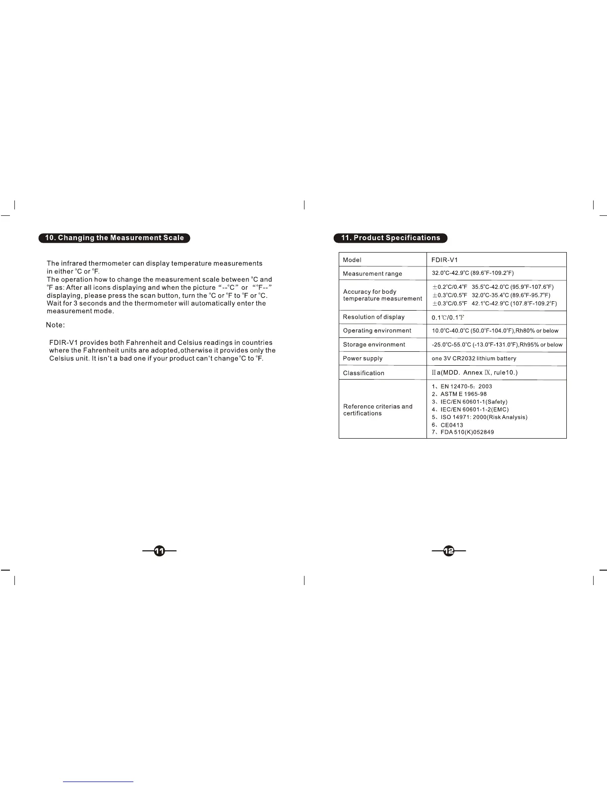 Simple FDIR-V1 - Changing the Measurement Scale; Product Specifications