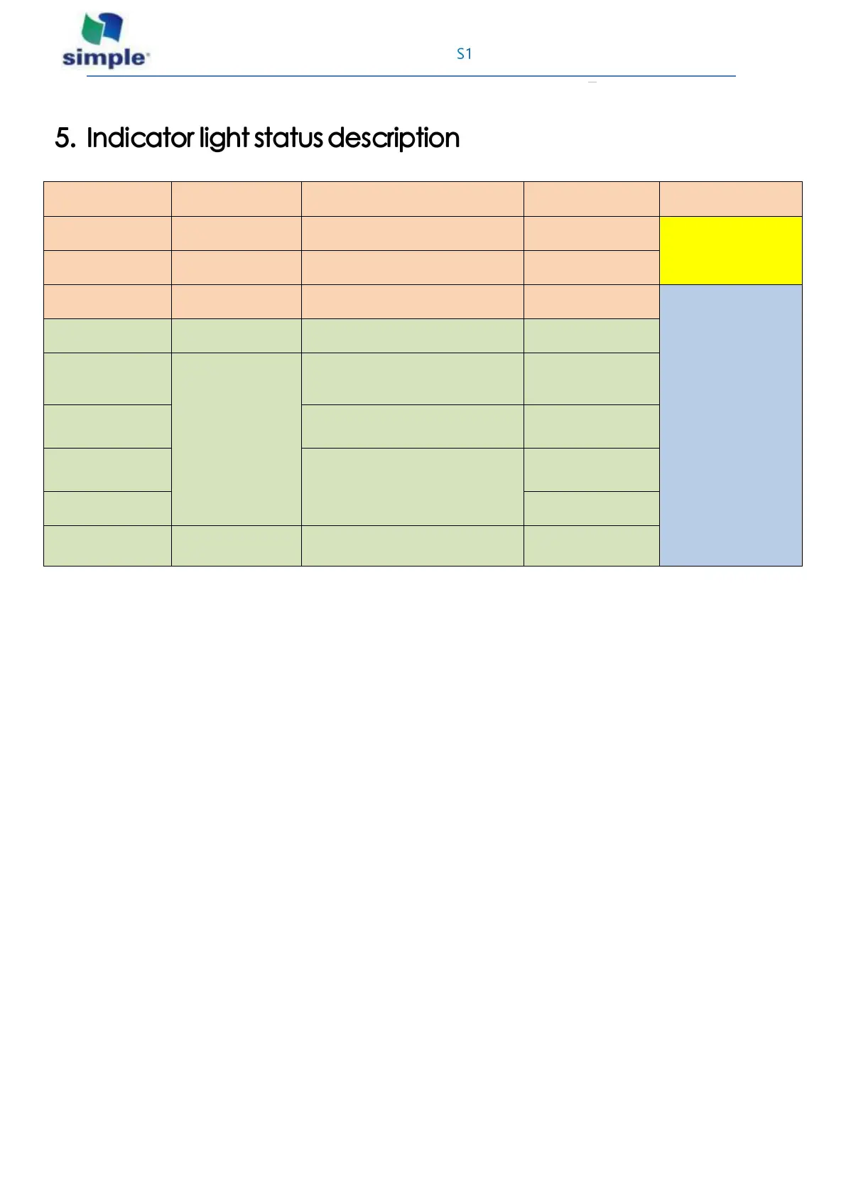 Simple S1 - Indicator Light Status Description; Charging Status Indicators; Operational Status Indicators