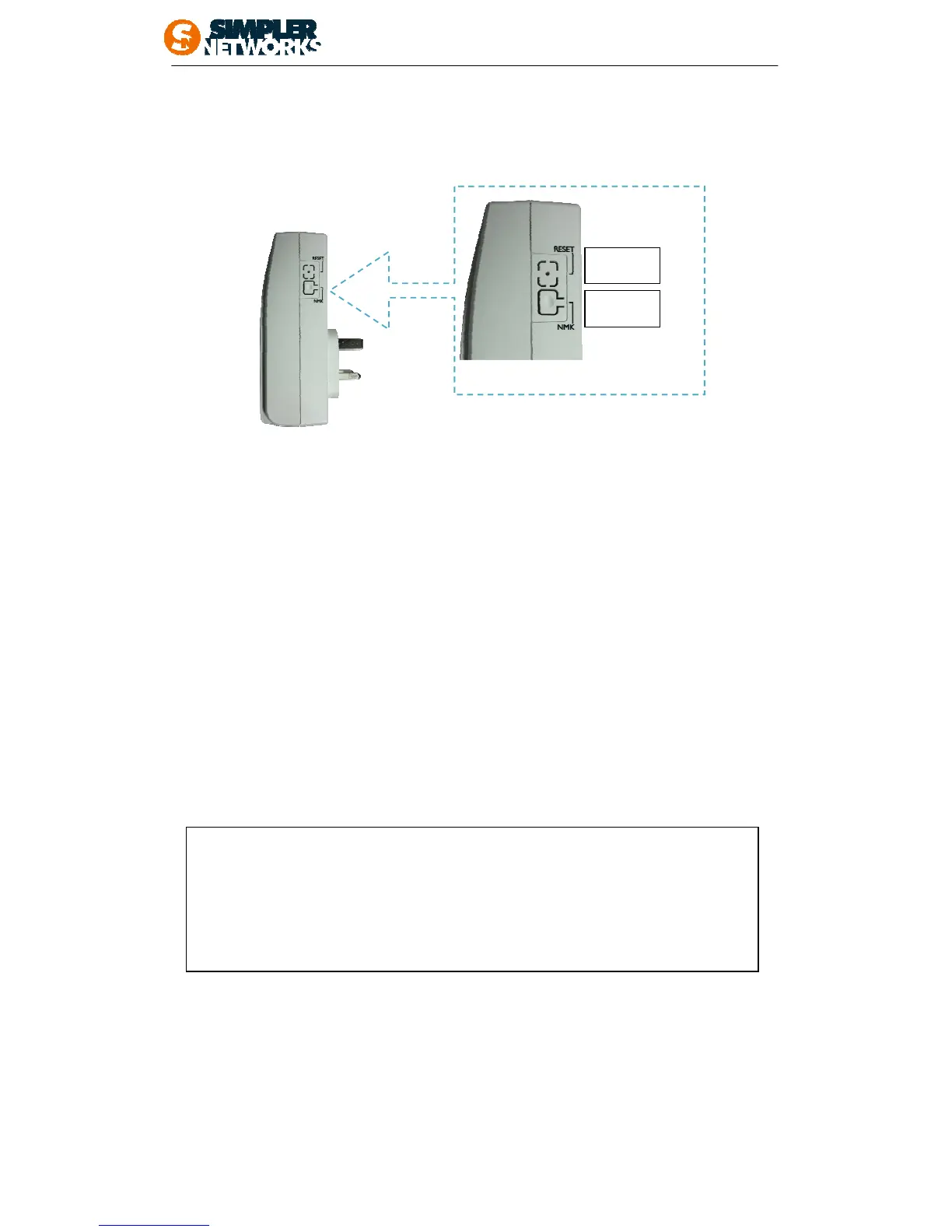 The Reset button restores the factory default settings in the adapter. You can use a small