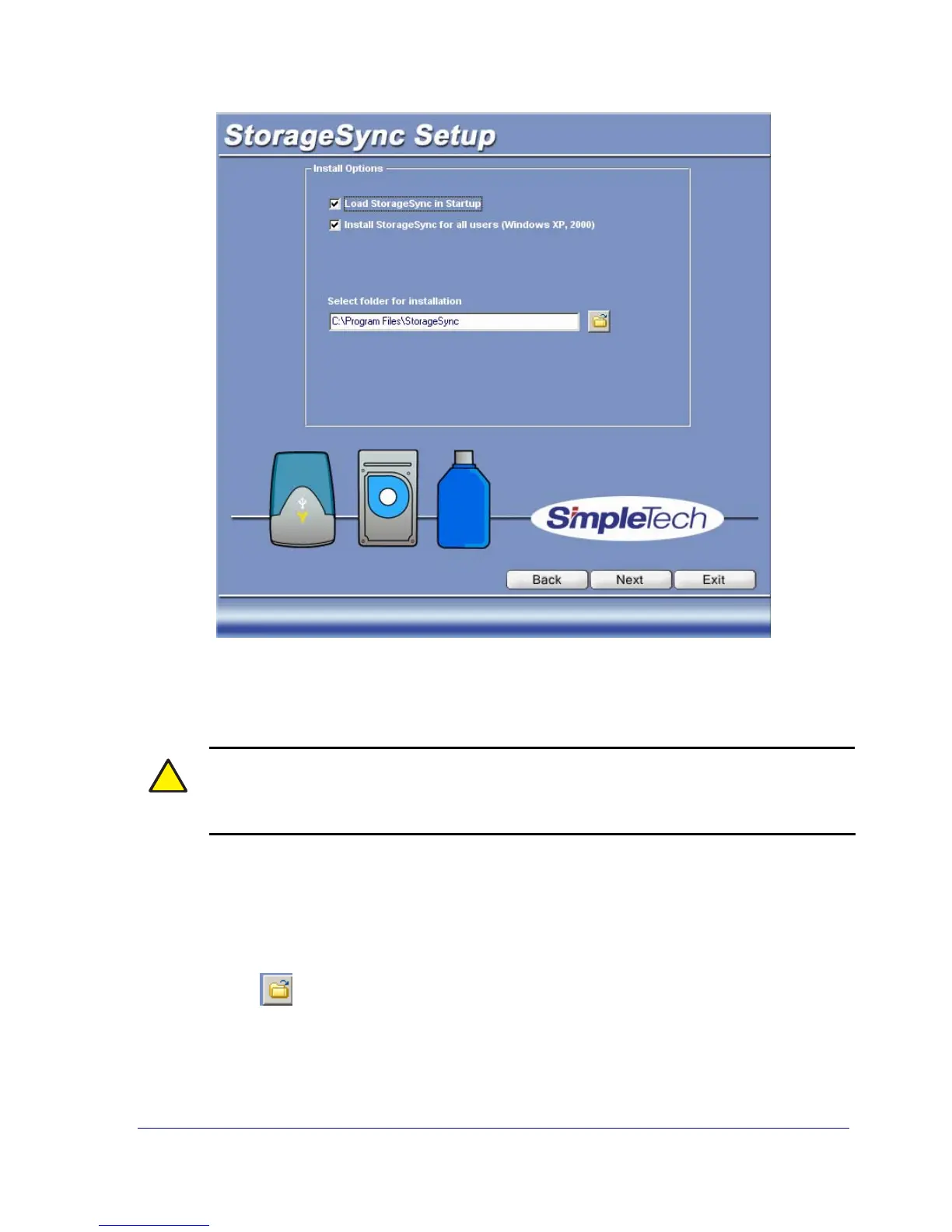 administrators to access StorageSync, uncheck Install StorageSync for all users