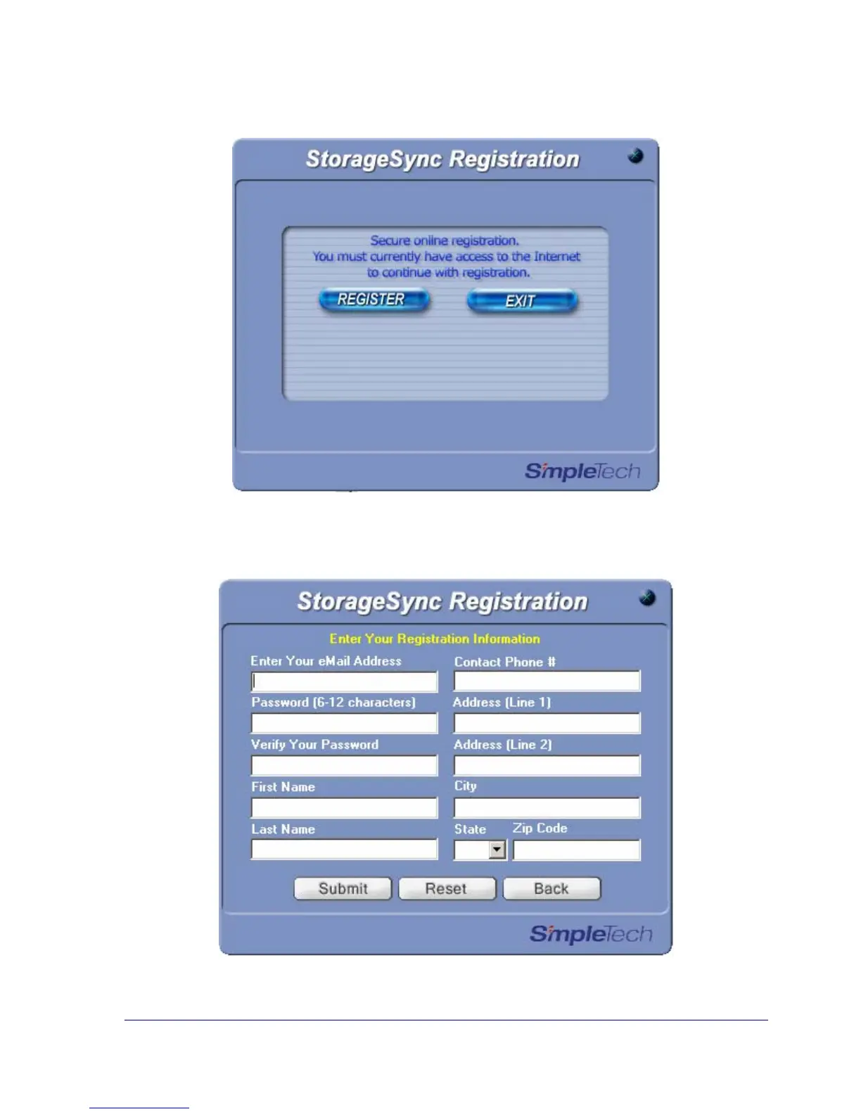 SimpleTech FV-U35/250 - Figure 5. Storagesync Registration Screen; Figure 6. Storagesync Registration Form