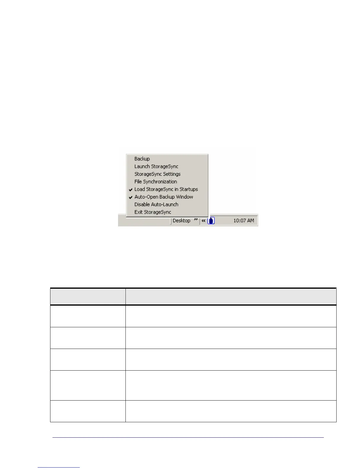 Each time StorageSync starts, it places a miniature icon in the System tray. Clicking this icon