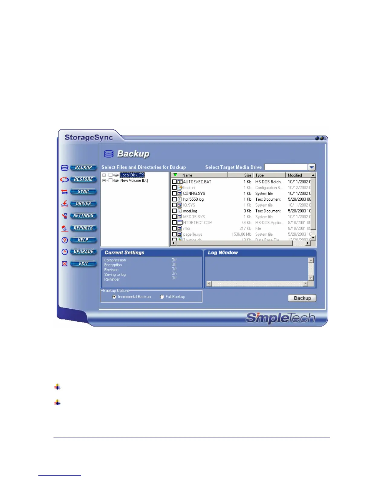 menu, the Backup window appears (see Figure 11). This secondary window lets you back up