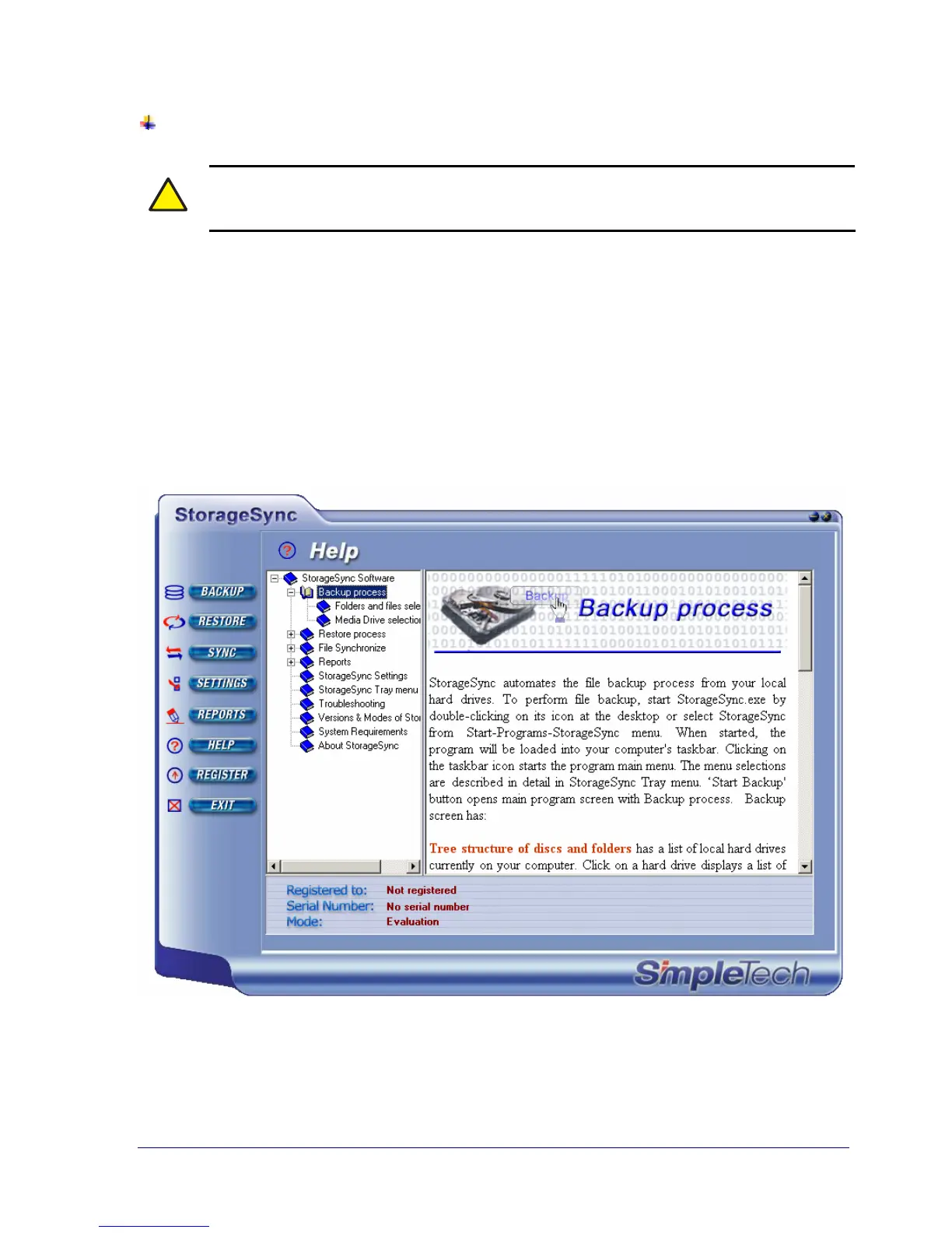 Figure 12 shows an example of StorageSync’s online help. Topics appear in the pane on the