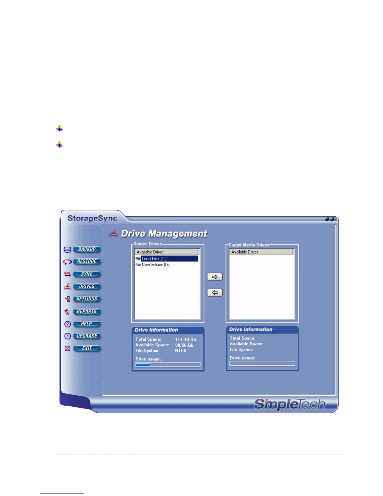 The Drives button on the left side of the StorageSync window lets you specify these drives.