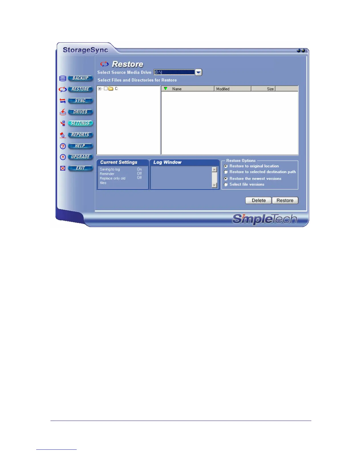 6. Under Current Settings, review your restore settings and change them if necessary. See