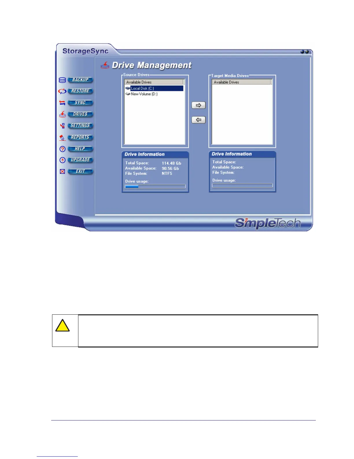 Initially, all available drives appear below Source Drives. You select at least one of these
