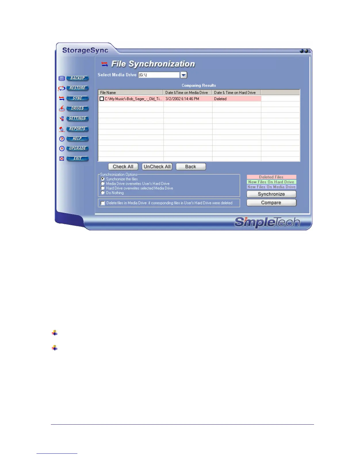 To synchronize files, you must have at least one target media drive and at least one source