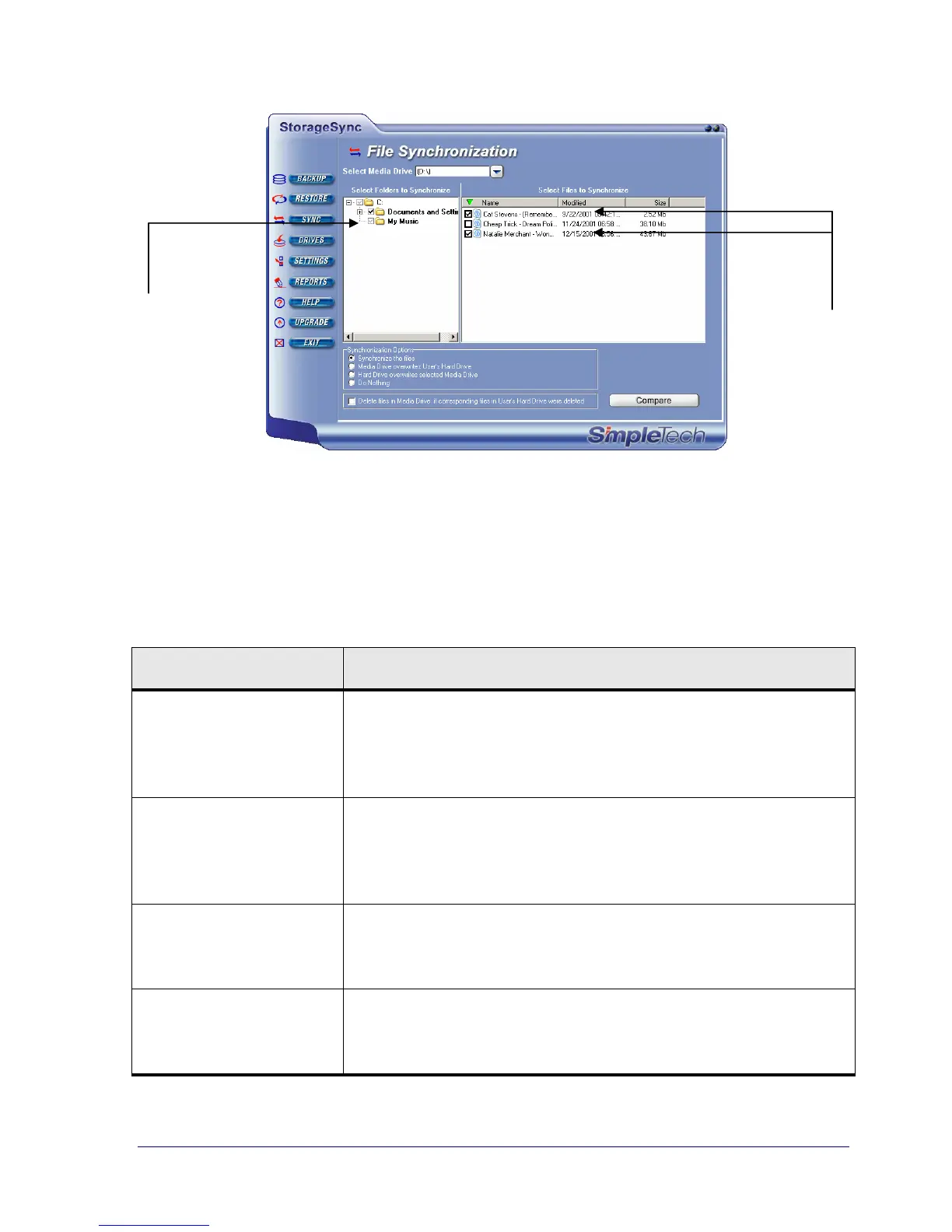 Table 7. Synchronize Options