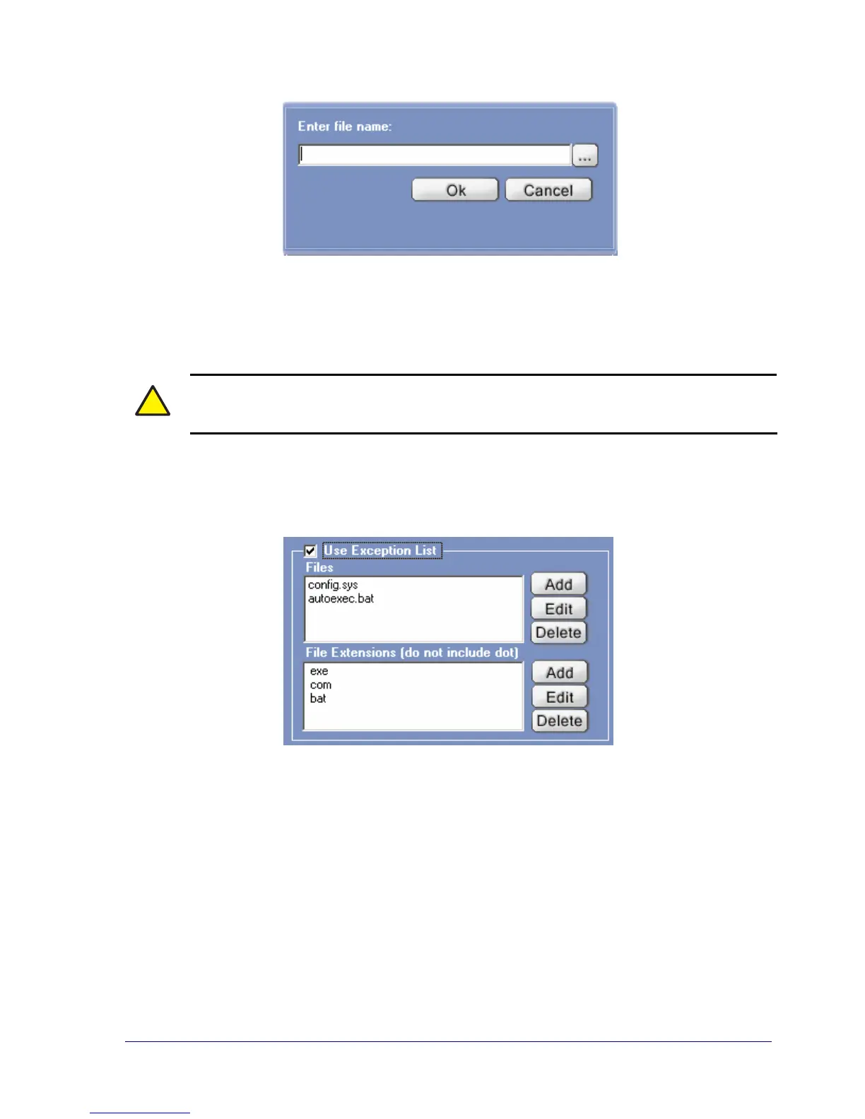 Figure 40. Sample File Names and File Extensions in the Exception List