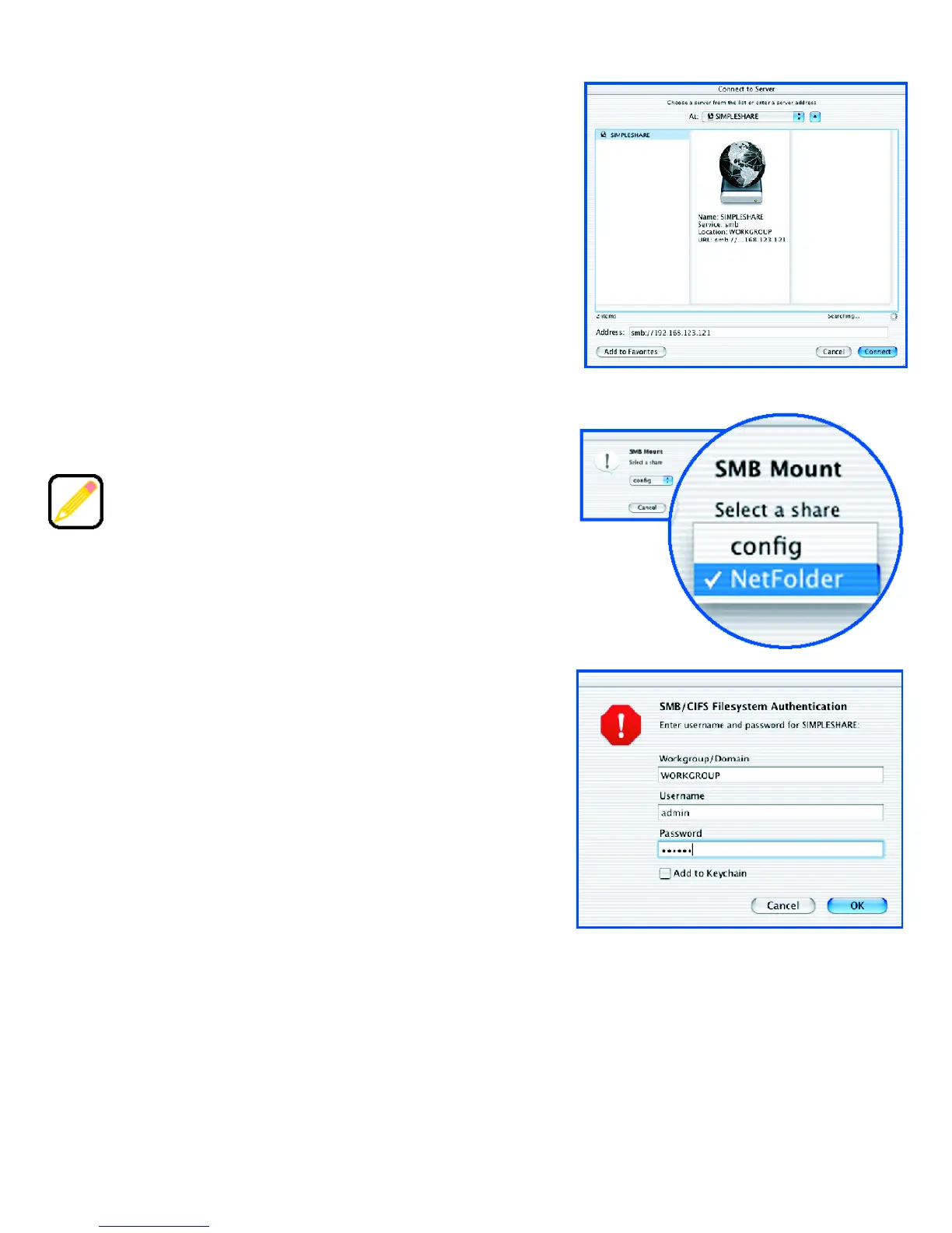 protocol "smb://" and the SimpleShare name