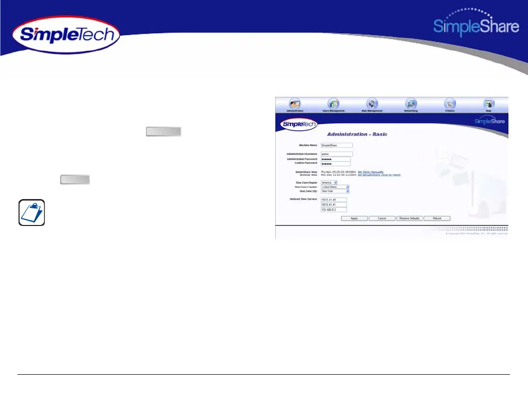 2 Click Set SimpleTech NAS Time To Match.
