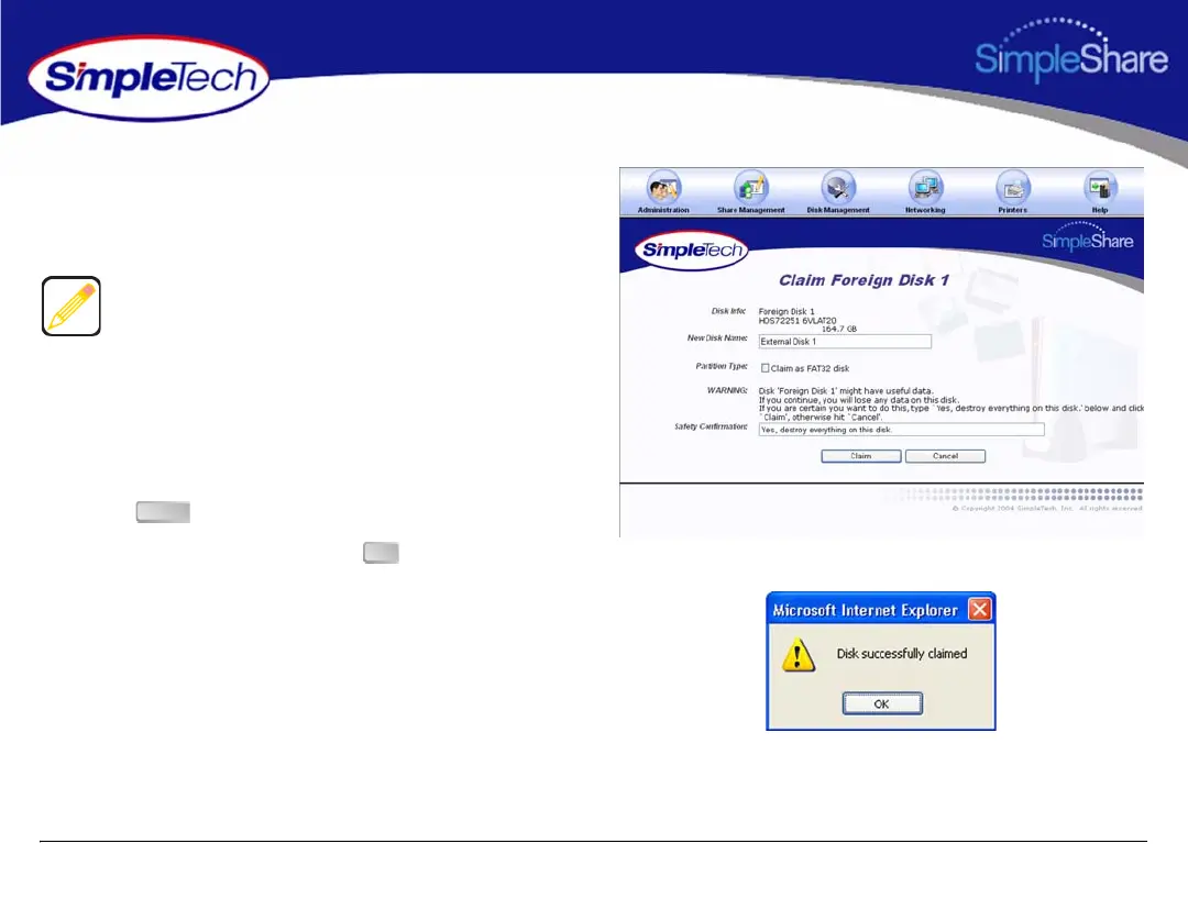 5 Make sure Claim as FAT32 Disk is not selected.