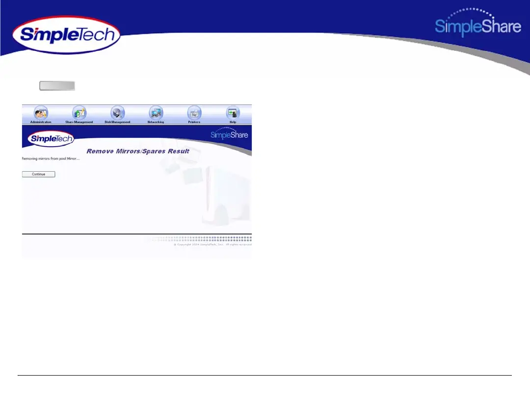 5 On the Remove Mirrors/Spares Result page, click