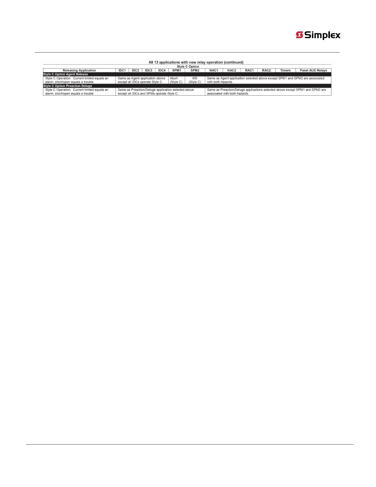 7. In Preaction/Deluge applications configured for Style C operation, SPM2 activates a manual release of both hazards.