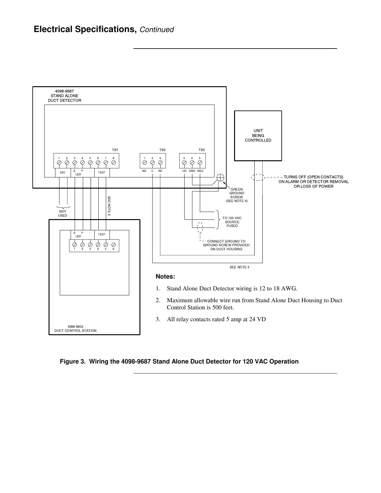 Figure 3. Wiring the 4098-9687 Stand Alone Duct Detector for 120 VAC Operation