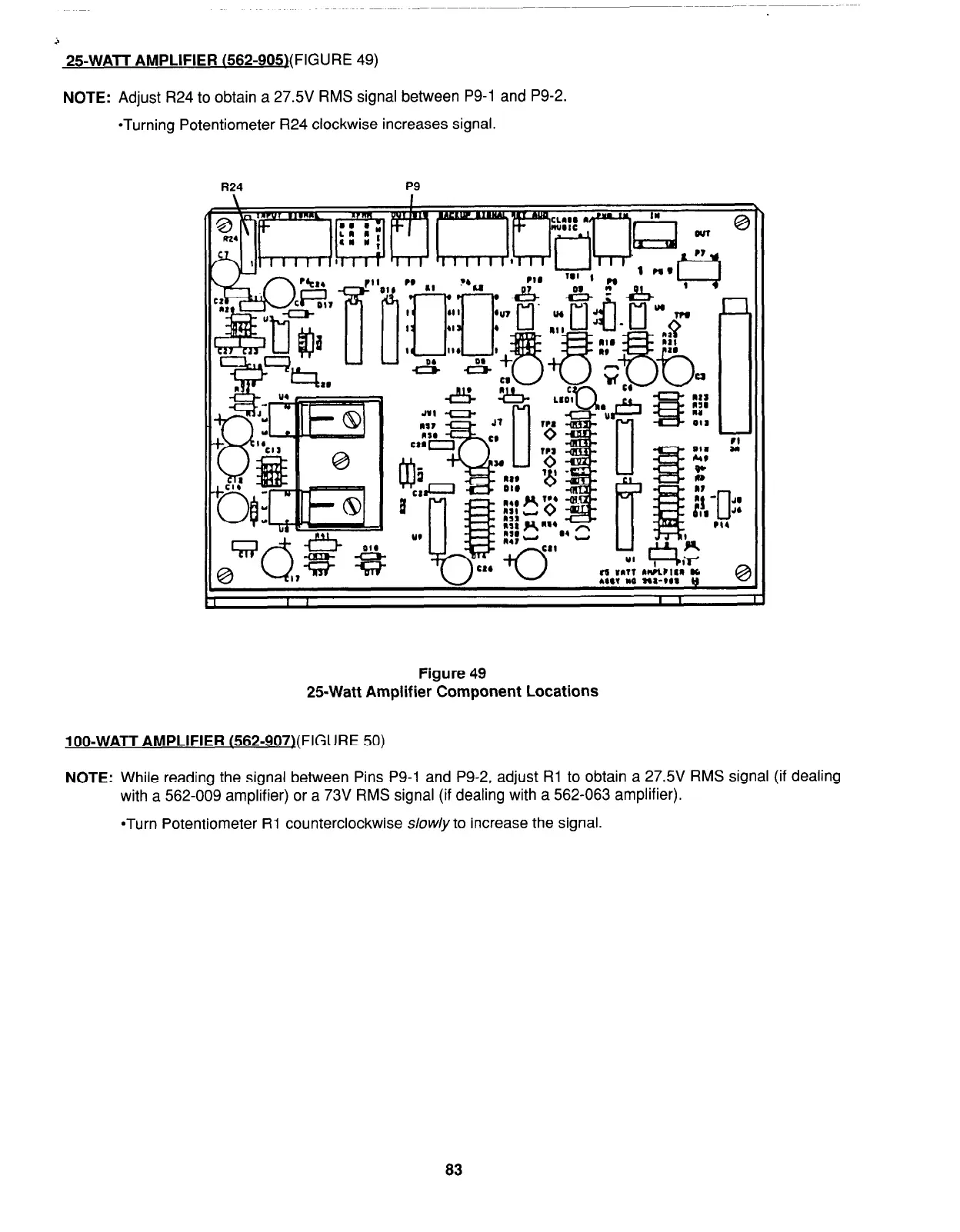 with a 562-009 amplifier) or a 73V RMS signal (if dealing with a 562-063 amplifier).